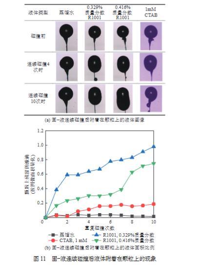 圖11固—液連續碰撞后液體附著在顆粒上的現象