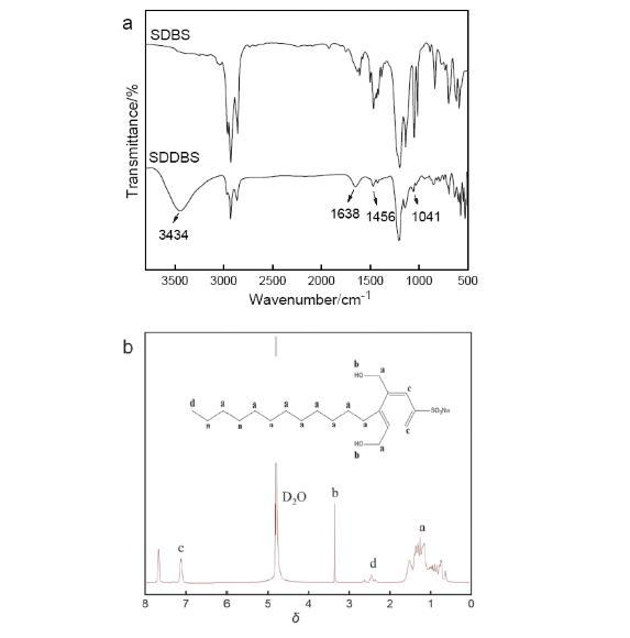 圖2(a)SDDBS紅外光譜圖和(b)核磁共振氫譜