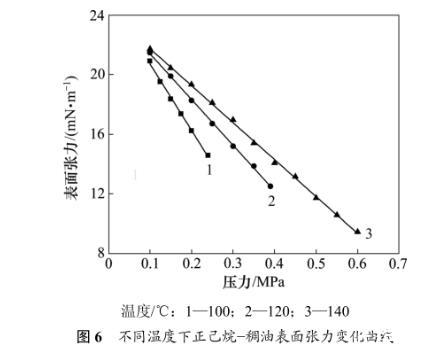 2.2.2溫度和壓力對正己烷-稠油表面張力的影響