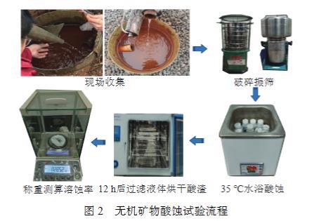 3)每隔2 h記錄溶蝕效果,酸浸12 h后過濾液體,收集烘干酸渣(于100℃烘箱中烘干12 h至恒重)計算溶蝕率,確定酸蝕礦物的最優酸度。