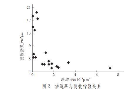 圖2 滲透率與賈敏指數(pdw/pdo)關系圖