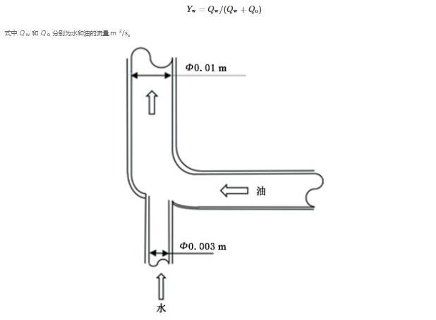 實(shí)驗(yàn)步驟:將油通過注入泵A泵入循環(huán)泵中, 將循環(huán)泵中的油通過伺服電機(jī)驅(qū)動(dòng)活塞移動(dòng)以一定的流速注入垂直管道,同時(shí)利用注入泵B將容器B中的表面活性劑水溶液通過注入點(diǎn)泵入垂直管道中的上升油流中,注水管段直徑0.003m,位于垂直上升管的底部,注入點(diǎn)的幾何形狀見圖2。