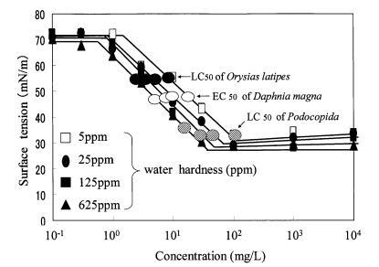 3.4、水硬度、表面張力和水生毒性之間的關系