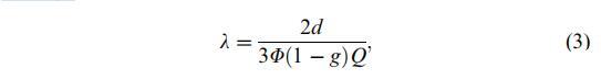 反過來,光的傳輸平均自由程與穿過的氣泡的平均直徑(d)和體積分數(F)有關