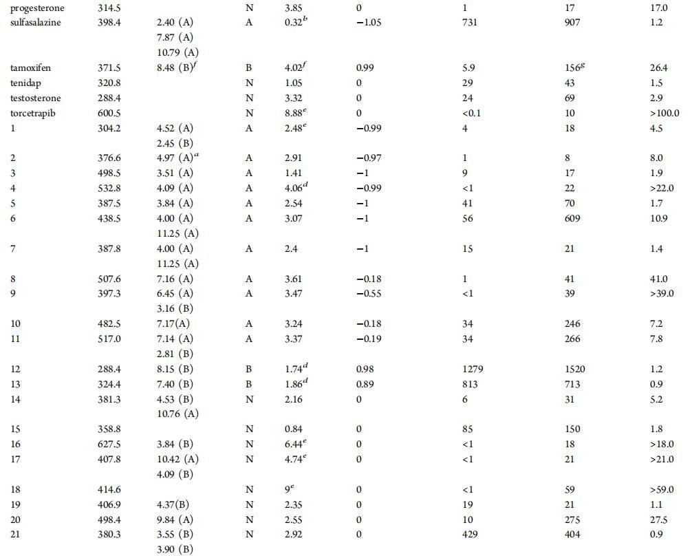 表1。51種化合物的理化性質(zhì)和溶解度數(shù)據(jù);除非另有說(shuō)明,否則數(shù)據(jù)按實(shí)驗(yàn)部分所述生成