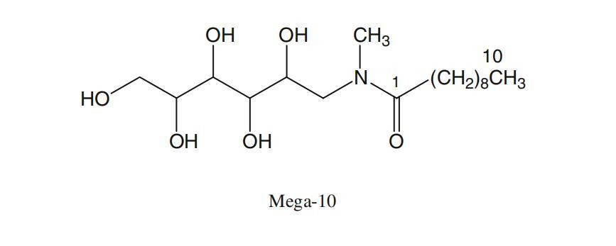 圖7α-CD(所示為一個吡喃葡萄糖苷單元)、DPS和Mega-10的示意圖。表面活性劑和α-CD的2D-ROESY光譜的關注區域。阿拉伯數字表示表面活性劑原子,而羅馬數字表示CD原子。b為DPS-α-CD系統。Mega-10-α-CD系統的c