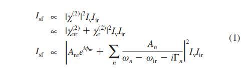 我們的VSF光譜設置已經在前面詳細描述過。51簡言之,我們采用了一種再生放大鈦寶石系統(Legend,Coherent,Inc.),該系統經過優化,可用于生產鈦寶石≈100fs脈沖,中心波長為800nm,帶寬為12nm;使用商用光學參量放大器和差頻產生裝置(TOPAS,light Conversion,立陶宛)將800 nm光的1 mJ/脈沖用于產生可調諧的中紅外脈沖,而使用一個或兩個標準具(用于聚焦于CH拉伸的測量)將0.5 mJ的光譜變窄。在產生IR和800 nm光譜變窄后,兩束光束都通過半波片和偏振器,并以相對于表面法線(分別為IR和可見光)40°和35°的反射幾何結構撞擊樣品。采樣后,過濾掉所有剩余的800 nm光,將VSF信號聚焦到光譜儀(Acton Instruments)中,在光譜儀中通過光柵將其分散,并聚焦到電子倍增電荷耦合器件(emCCD)攝像機(牛頓和或)上。本研究中報告的所有光譜均在ssp偏振條件下收集(s偏振SF、s偏振可見光、p偏振紅外)。所有測量均在21.5°C下進行。