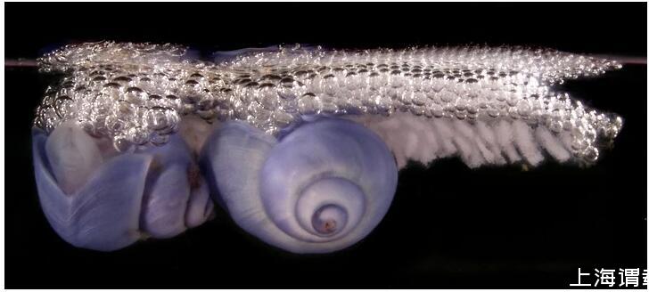 氣泡和泡沫在自然界中也有實際用途。圖中展示的是一種浮掛在海中生活的紫蝸牛,泡泡包裹著它們分泌的粘液形成浮筏使,它們以捕食生活在水面的小生物為生。丨圖源:Dorling Kindersley;Denis Riek