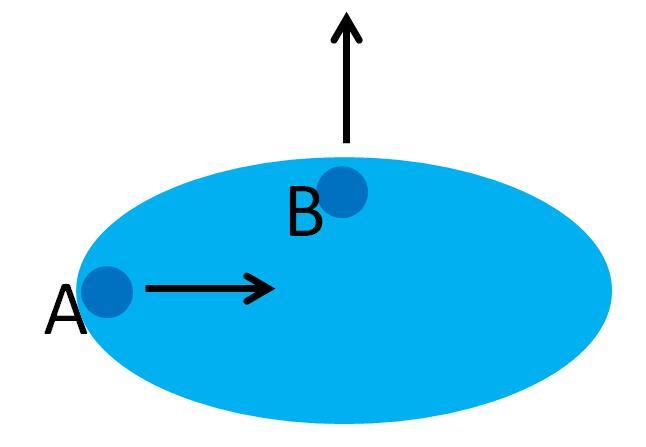 如下圖,為什么水分子A會向中心運(yùn)動,而水分子B卻遠(yuǎn)離中心?