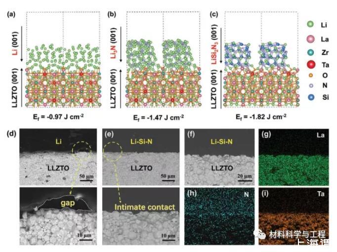 2)降低了Li|石榴石的界面形成能,使其具有良好的化學(xué)接觸。用1wt%Si3N4降低表面張力起主導(dǎo)作用。