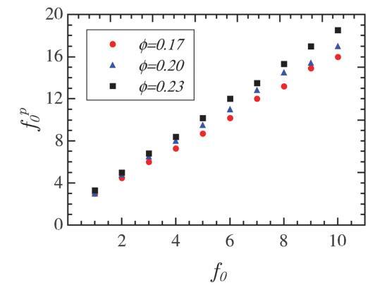 由于點偶極子模型的簡單性,值得尋找兩個模型之間的對應關系。為此,我們確定了一組f0在三個不同面積分數下的有效相互作用強度f p0。對于感興趣的參數范圍,可以在圖10中看到f p0和f0之間的關系。該圖有助于選擇適當的f p0,以便通過僅基于更簡單的點偶極子模型進行模擬來計算單層的結構特性。或者,如果實驗對相關函數由點偶極子近似建模,則sffi ep的值可以使用根據該圖估計的相應f0計算。