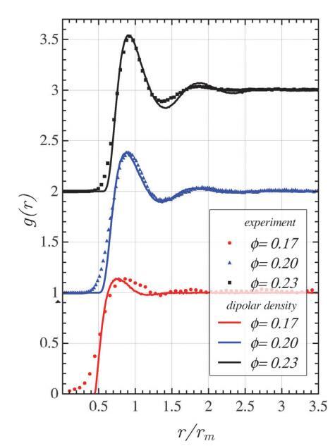 圖6使用偶極密度相互作用通過實驗和BD模擬獲得的徑向分布函數。為了清晰起見,數據已垂直移動。
