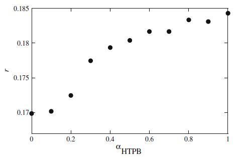 圖8 HTPB+Mega-10混合體系的熒光各向異性r與αHTPB的關系圖