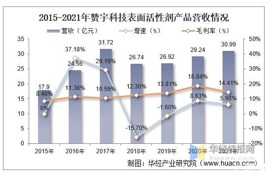 贊宇科技集團(tuán)股份有限公司是專業(yè)從事表面活性劑、油脂化學(xué)品研發(fā)制造和洗化產(chǎn)品代加工的高新技術(shù)企業(yè)。長期以來,公司憑借先進(jìn)的理念、科學(xué)的管理以及技術(shù)和人才的優(yōu)勢,堅(jiān)持自主創(chuàng)新,走科技成果產(chǎn)業(yè)化的發(fā)展道路,現(xiàn)已成為國內(nèi)研究和生產(chǎn)表面活性劑的龍頭企業(yè)之一。據(jù)資料顯示,2021年公司表面活性劑產(chǎn)品營收為30.99億元,同比增長5.98%,毛利率為14.41%。
