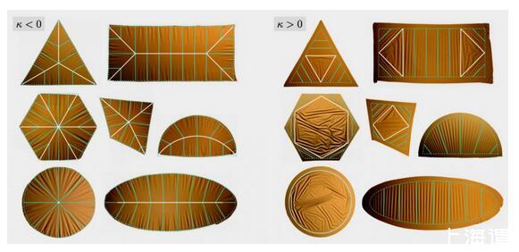 在這項(xiàng)研究中,團(tuán)隊(duì)把重點(diǎn)放在具有正曲率和負(fù)曲率的彎曲外殼,重點(diǎn)分析材料的物理形狀和曲率對(duì)褶皺的模式可能產(chǎn)生多大的影響。