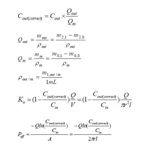 對于易于吸收的藥物,即Peff>0.2×10?4cm/min,灌流時溶液密度的變化對測量結果影響不大,可以默認ρin=ρout=1 g/mL,即校正濃度Cout(Correct)=Cout×mout/min。
