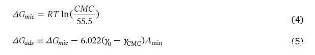 盡管對于是否應該修改Gibbs分析存在一些爭論[19,20]。ΔGads和ΔGmic是由Rosen的方法計算得出的: