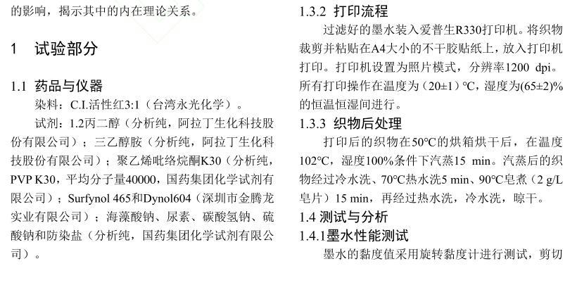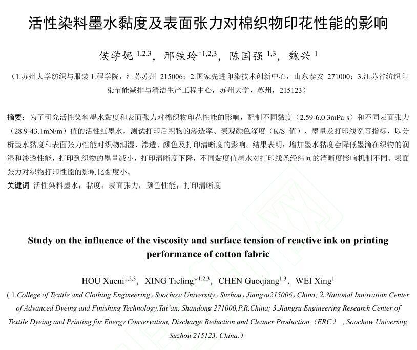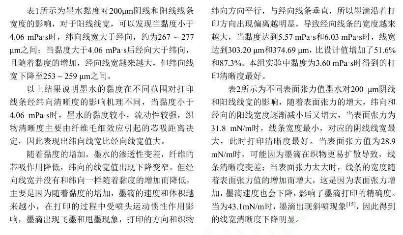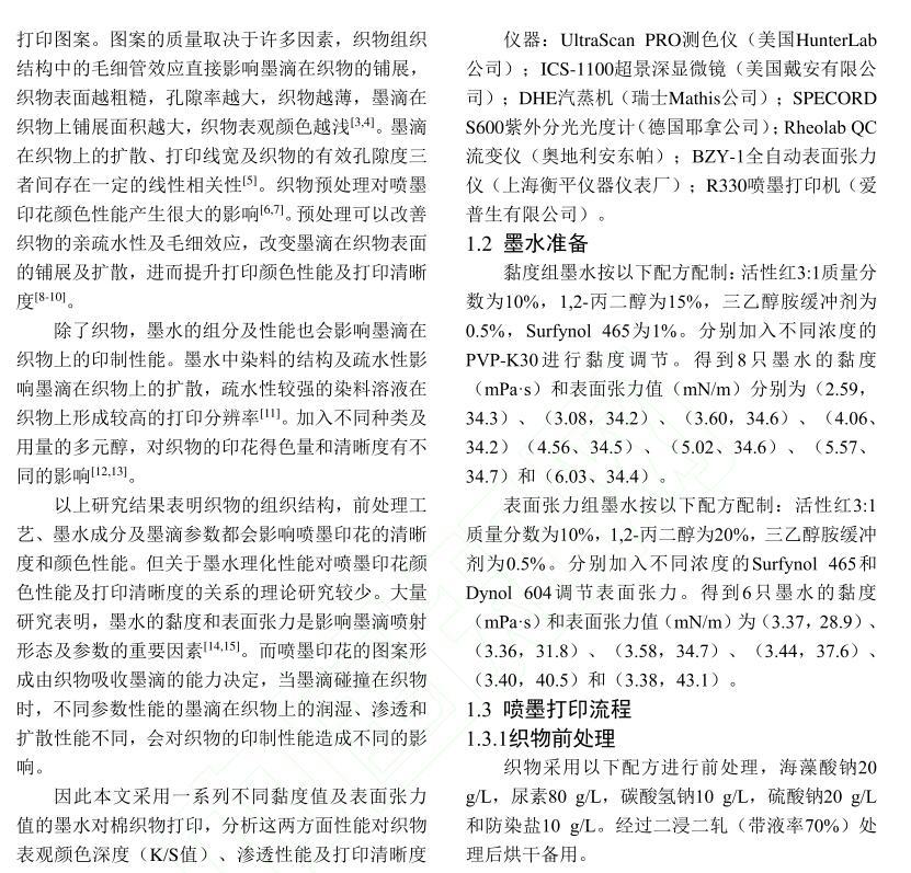 活性染料墨水黏度及表面張力對(duì)棉織物印花性能的影響