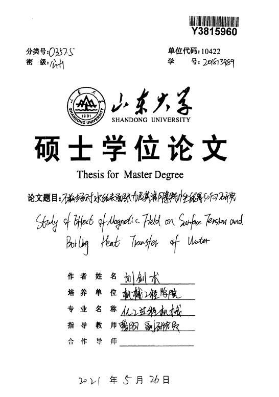 磁場對水的表面張力及其沸騰特性的影響研究