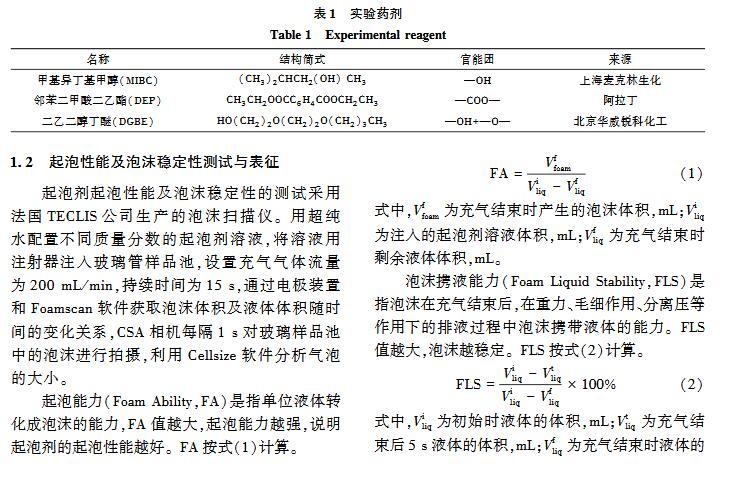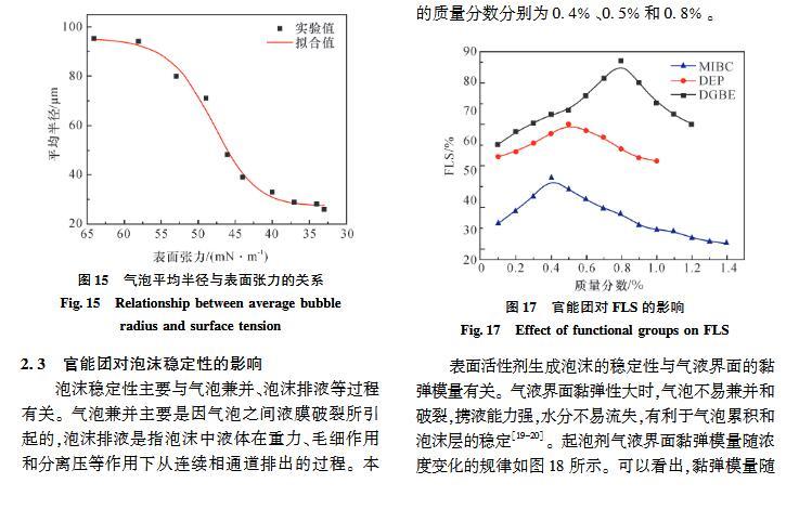 官能團(tuán)對(duì)起泡性能和泡沫穩(wěn)定性影響的研究