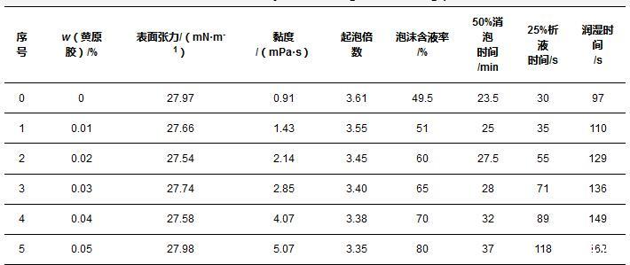 Tab.2 Effect of surface tension on foaming and wetting performance