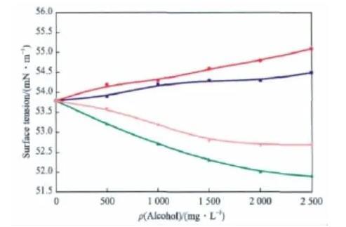 不同的醇對(duì)BHEC水溶液表面張力的影響