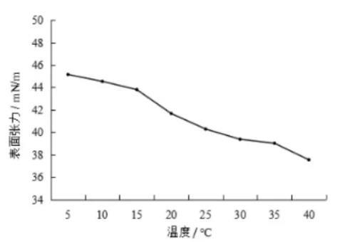 將配制好的合成血液分別放置5℃~40℃的環(huán)境中1小時,然后取出測定其表面張力,每個溫度連續(xù)測定5次并取其算術平均值作為表面張力的結果。