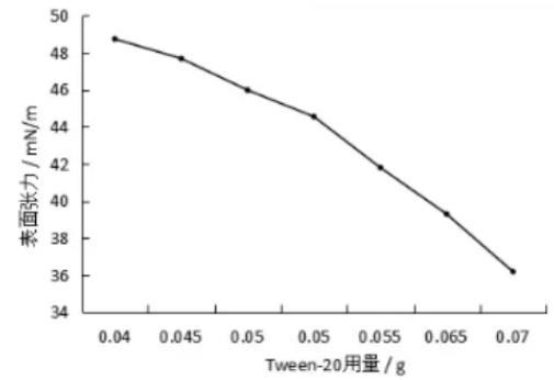 圖2不同Tween-20用量下合成血液的表面張力變化