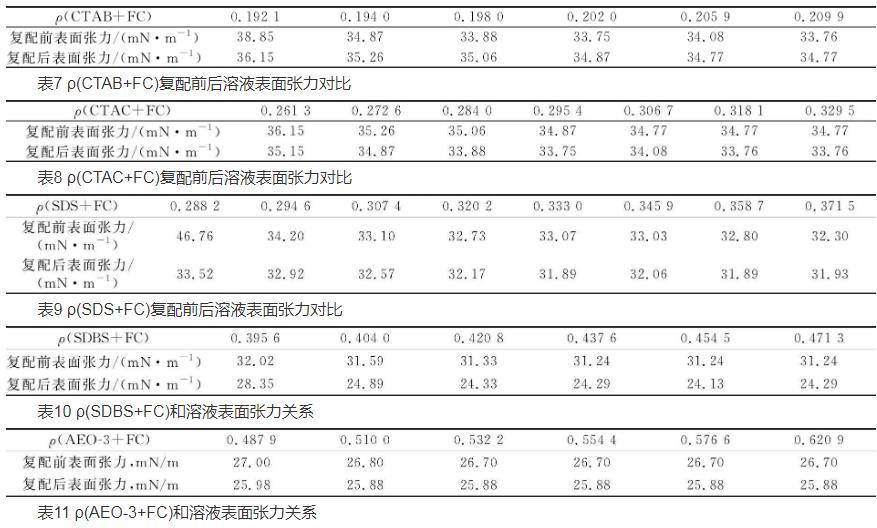 氟碳-碳氫表面活性劑復配體系表面張力變化規律與影響因素