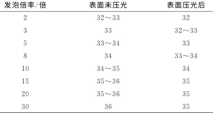 表2不同倍率發(fā)泡產(chǎn)品電暈處理前表面張力