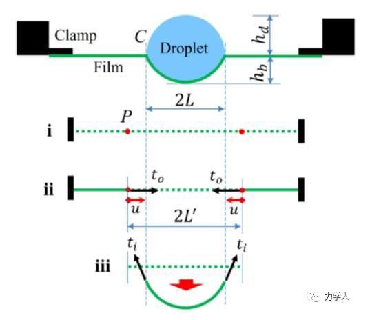 圖1液滴作用下薄膜的變形過程