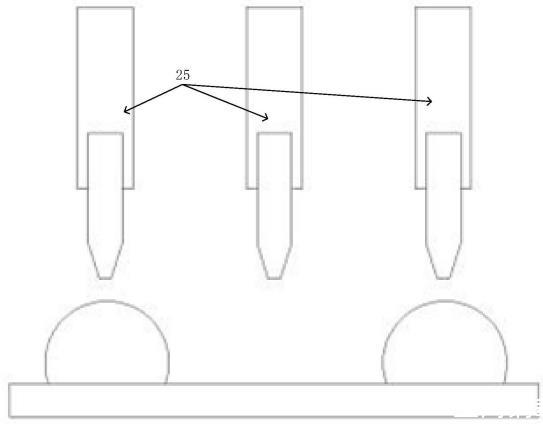 步驟S3:通過印刷機構將摻入碳粉并通入正電荷的UV油墨鋪滿在紙張上,由于紙張上已覆蓋有固化的UV涂層,因此UV油墨在紙張上仍可自由移動,此時通過計算機處理印刷圖案,進而控制印刷機構向指定金屬探針輸送負電荷,其余金屬探針輸送正電荷,當金屬探針接觸帶正電荷UV油墨時,通過異電荷相互吸附的原理,UV油墨將向金屬探針聚攏;其余探針通過同電荷相互排斥的原理,UV油墨將向金屬探針反方向逃逸,待金屬探針收回,UV油墨將因表面張力短時間內無法流平,再對紙張表層所有UV油墨進行最終固化;